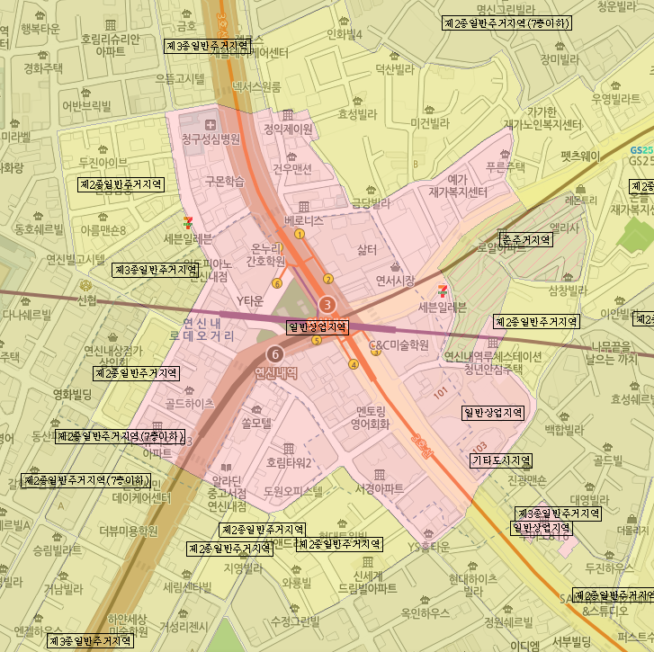 최근에는 복합개발형 도시계획이 반영되며, 일부 일반상업지역이 주거와 상업이 혼재된 구조로 재편되고 있습니다. 이는 유동인구 확대는 물론, 상업적 기능의 고도화를 이끌고 있어 중장기적인 관점에서 긍정적인 신호로 해석됩니다.